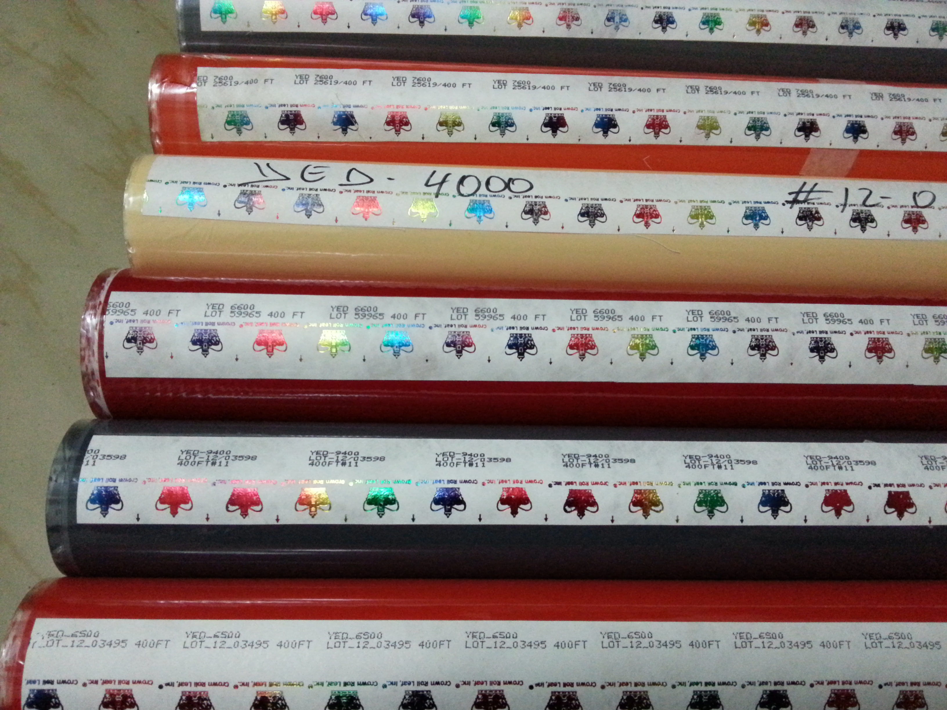 美國皇冠YED系列顏料箔色彩種類齊全 色澤鮮艷 可用于燙印于精裝書本封面、圣經相冊仿皮本封面、記事本PU\PVC外套、其他皮革制品、服裝吊牌吊粒、化妝品塑料件、眉筆、油漆鉛筆等,以其膠底良好的剝離性能和顏色的多樣性而被廣大客戶所青睞。